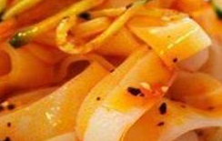 涼皮的種類(lèi)也是很多。從制作工藝上來(lái)說(shuō),有熱米皮、搟面皮、烙面皮、釀皮子等等不一。從涼皮的用料上來(lái)說(shuō),有麻醬涼皮,面筋涼皮,紅薯面皮,綠豆面皮,大米面皮,小麥面皮等等。不管哪一種涼皮,都是選料精良,工藝嚴(yán)謹(jǐn),調(diào)味講究,以“白、薄、光、軟、筋、香”而聞名,涼爽可口。